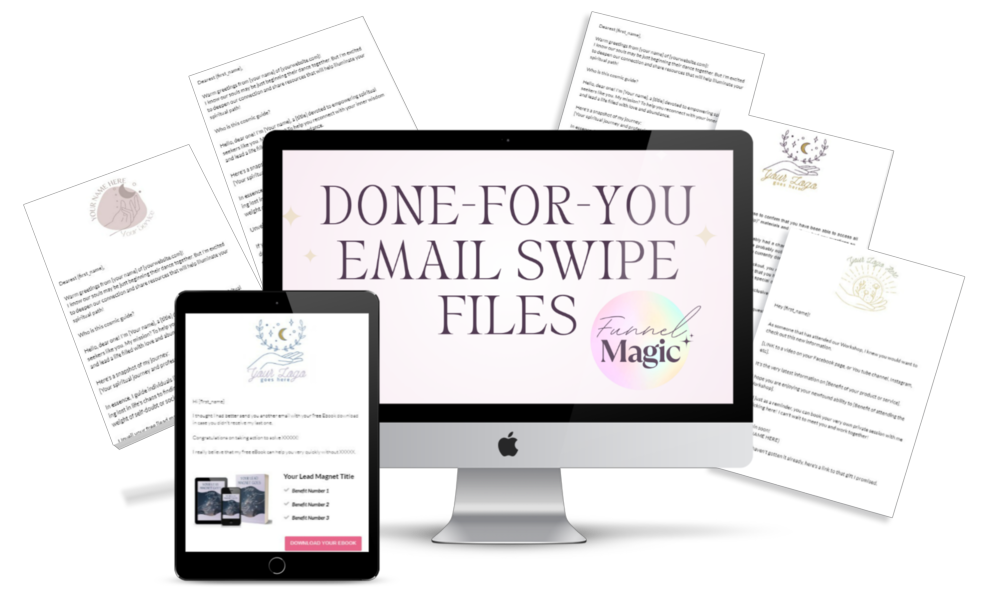 All the emails you need to LAUNCH your lead, sales, workshop or high-ticket funnels are ready to go with our EASY to use and FAST email swipe files!
