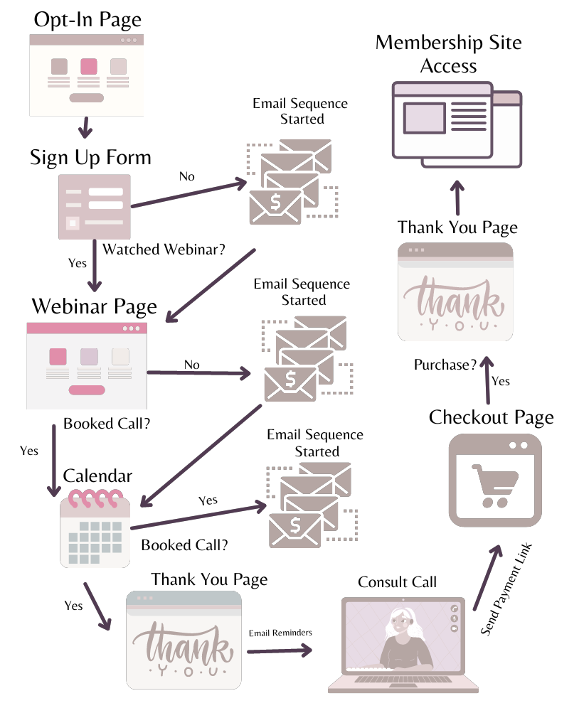 This funnel comes with (9) fully optimized pages that magically guide your prospects from never having heard of you to watching your webinar, booking a consultation, and finally, to purchasing your high-ticket service, course, program, or coaching package!