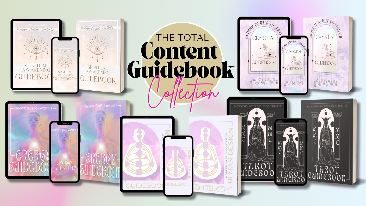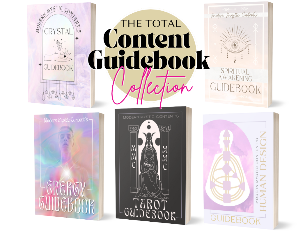 Get Instant Access To Our Five NEWEST Content Guidebooks covering Human Design, Tarot, Energy, Spiritual Awakening, & Crystals. This Exclusive Collection Includes OVER 200+ Pages & 42,000+ Words Of High-Quality, Magical Content Written By Top Content Creators!